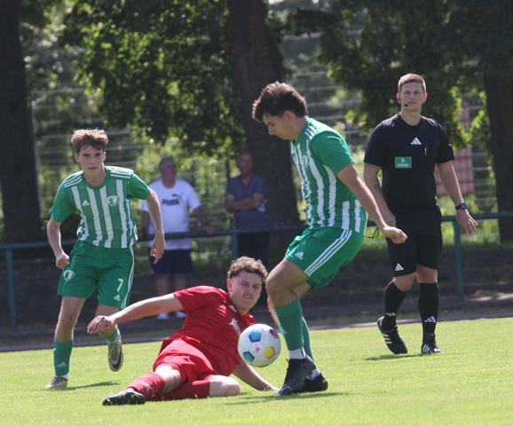 Viel mehr noch: einen weiten Abschlag des Torwarts konnten die Rot-Weißen nicht klären. Ahlgrimm kam in Position und schob in der 69. Minute sogar zum 2:0 ein. Die Sensation nahm Konturen an. Ludwigs per Kopfball und Libnow an den Pfosten – noch gaben sich die Landesliga-Youngsters nicht geschlagen. Zwei Minuten vor dem Ende brachte Tim Andrys mit seinem 1:2-Anschlusstor noch einmal Spannung in den Pokal-Hit. Nun schwamm die Kolacki-Elf, überstand einen Kopfball an die Torlatte und einige Standards mit Glück sowie Geschick und feierte einen denkwürdigen Nachmittag.